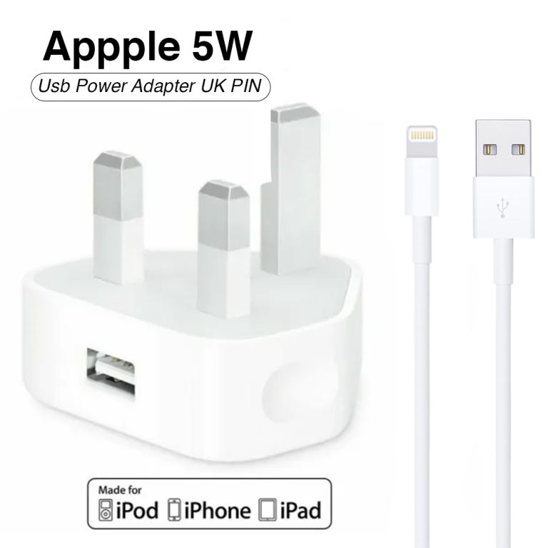 Iphone Usb 5w Power Adaptor Uk Pin With Lightning To Usb Cable